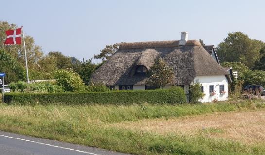 Au moteur, la voile affalée et rangée (voir plus bas), nous passons sous l’ile de Bogo (je n’ai pas respecté les caractères DK) puis l’étroiture entre Harbolle (petit port 2m à l’entrée, maison très typique) et Ore (sur l’ile de Norre, longue et triangulaire, au sud), assez plat, boisé et prairies. Ensuite le long chenal balisé et étroit, le Grönsund, étonnamment à contre-courant (1-2 nds), nous croisons pas mal de voiliers. A la sortie du chenal, il reste environ 12 milles. Cap au nord-est, jusqu’à Klintholm. Le vent se lève, force 3-4 petit-largue, largue. On a pas l’énergie de ré-hisser la voile, déjà bien emballée dans le lazy bag, bien fermé.