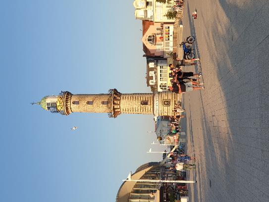 Météo : vent fort (6-7 bf) Nous prenons la voiture pour Heiligenhafen : visite du petit musée maritime flottant, bière (Gosch et son barman avec son bon sens de l’humour) et balade sur la Seebrücke, magnifique et romantique, repas hamburger au pied de la Seebrücke. Le vent n’est pas si fort, la skipper râle. Et nous continuons notre périple et visitons la tour d’observation ici le vent se fait bien sentir (ancienne tour de communication) et sa très belle exposition sur la mer (vie, pêche, géologie). Souper léger au bateau.