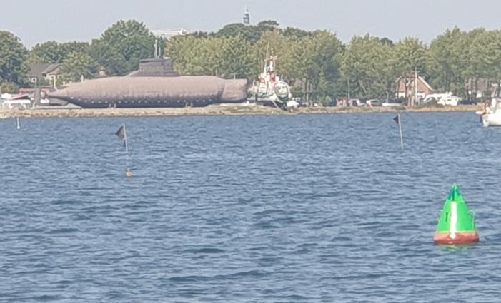 Visite d’un sous-marin (1966-68), poste de pilotage, machines, …, situé en face de Burgtiefe, dans la même baie), avec son port voisin de Burgstaaken et son silo de grimpe (trop haut pour moi), Lemkenhafen et le port de Fehmarn-Orth. Bien des voiliers magnifiques. Balade sur la digue puis souper sur le bateau (je pense).